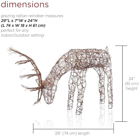 - ALTO DE 2 PIES: El reno de ratán mide 29"L x 7"W x 24"H, perfecto para tu jardín. También se incluye un soporte del fabricante por un año a partir de la fecha de compra.