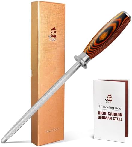 TUO Honing Steel, Sharpener Rod with Thicker Steel Core for Kitchen Knives Daily Sharpening Maintenance, High Carbon Steel, Ergonomic Handle, 8 inch
