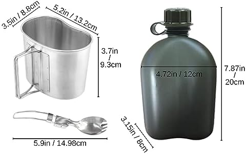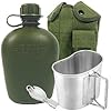 BeGrit Military Canteen Army Canteen WWII US G.I. Style Canteen Kit with Aluminum Cup Stainless Steel Foldable Spoon Fork for Hiking Backpacking Camping, 1 Quart Green