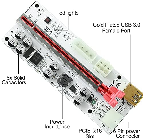 Ubit 6-PCS PCI-E Riser for BitcoinLitecoinETH coin PCIe VER 006C 6 PIN 16x to 1x Powered Riser Adapter Card 6-Pin PCI-E to SATA Power Cable - GPU Riser Adapter - Ethereum Mining ETH