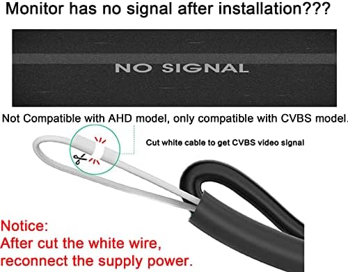 - CVBS SIGNAL& RULER LINE CONTROL: The default car backup camera is CVBS model. Please cut off the white cable If you don't want the ruler line.