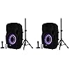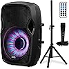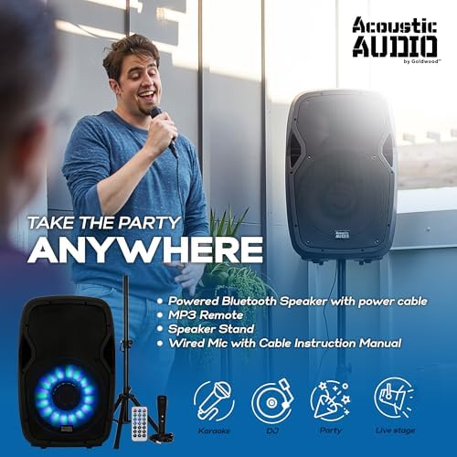 Acoustic Audio by Goldwood 1000W Bluetooth Speaker w/ Flashing LED, Large Plug-In PA System w/ Stand, Mic, & Remote for Karaoke, DJ, or Tailgate Party