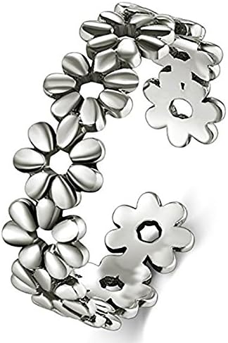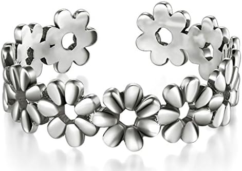BORUO Toe Rings - Flower Hawaiian Leaf Sterling Silver Band Ring - Stylish Toe Rings For Women - Sterling Silver Rings for Gifting - Chic 925 Sterling Silver Rings - Toe Rings For Women With Gift Bag , 5mm