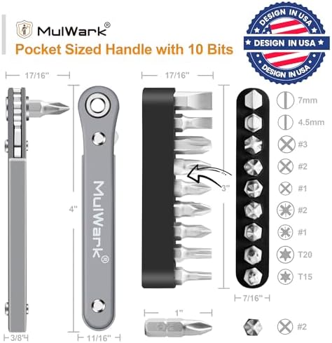 MULWARK 11 piezas Destornillador de ángulo recto 1/4 Mini llave de trinquete de proximidad con alta torque y bajo perfil - Herramienta EDC con mango de palanca reversible de mini offset de 90 grados
