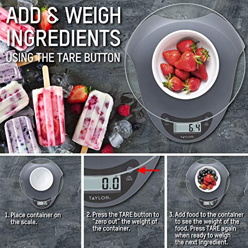 - EASY TARE: Add and weigh tare allows multiple ingredients to be weighed in one container.