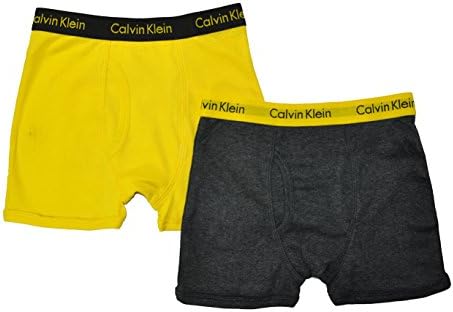 Calvin Klein 112417-T.50 New Little/Big Boys' Assorted Boxer Briefs (Pack of 2) (4/5, Charcoal/Yellow)
