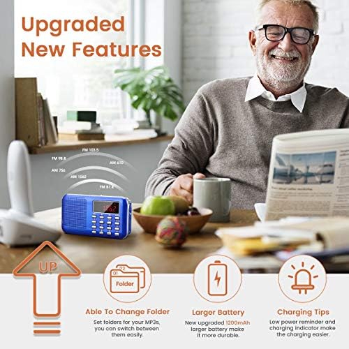 PRUNUS Mini Portable Radio AM FM Pocket Radio with MP3, LED Flashlight, Digital Radio Speaker Support Micro SD/TF Card/USB, Auto Scan Save, 1200mAh Rechargeable Battery Operated[Latest Version]