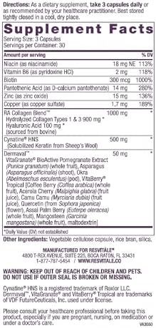 ResVitále Beauty 3 - Skin Care Supplement with Collagen, Keratin & Elastin - 90 Capsules