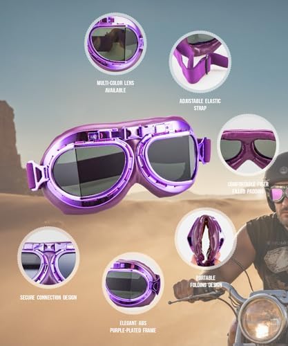 Vintage Aviator Pilot Style Motorcycle Cruiser Scooter Goggle T08 T08ZTZ - Parent (Purple frame Tint lens)