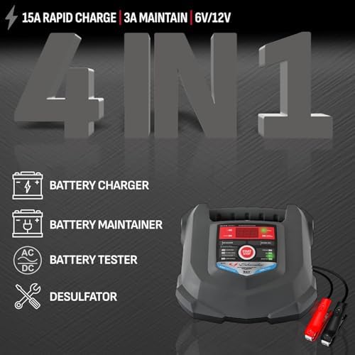 Cargador y Mantenedor de Baterías Schumacher Electric SC1280 4-en-1, 15 Amperios, Completamente Automático para Baterías de Automóviles de 6v y 12v - Ideal para Motocicletas, Coches, Camiones, SUV, Baterías Marinas y Más