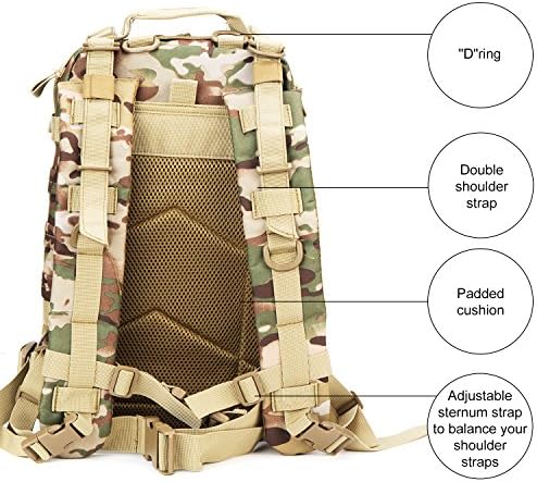 WolfWarriorX Small Military Tactical Assault Hiking Camping Fishing Trekking Traveling Extreme Water Resistant Rucksack Molle Bug Out Bag Laptop Backpack Black (OCP)