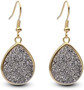 Sterling Silver Natural Drusy Quartz Gemstone Dangling Earrings