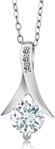 Gem Stone King 2.30 Cttw Sky Blue Aquamarine and White Diamond Pendant Earrings Jewelry Set Gift Set For Women | 925 Sterling Silver | 6MM Round Cut | With 18 Inch Silver Chain