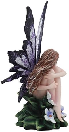 Ebros Amy Brown Whimsical Luna Periwinkle Flower Nude Garden Fairy Figurine FAE Magic Purple Fairy Statue Fantasy Collectible 5.25" H