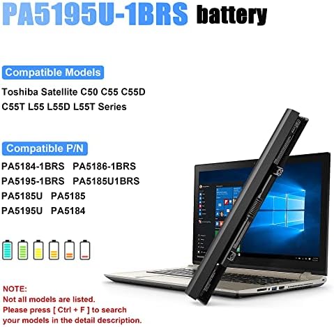 PA5185U-1BRS Laptop Battery for Toshiba Satellite C55 C55D C55T S55 S55T L55 C50-B L55T L55D C55-B C55-B5200 C55-B5299 C55-B5300 C55-B5302 E45-B4100,P/N: PA5184U-1BRS PA5195U-1BRS PA5186U-1BRS