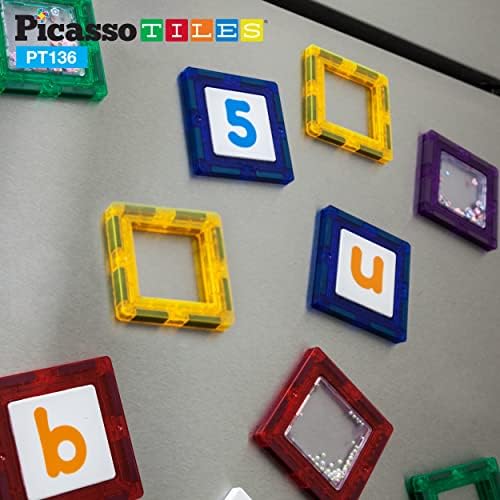 - DREAM BIG & BUILD BIG - No limitations, scalable to build as big as desired by adding more pieces to create the masterpiece. 136 piece educational kit features 16 Craft Arts, 2 Car Trucks, 2 LED lights, 14 Symbols (23 Styles), 26 Alphabets, 10 Numerals, and 66 Frames, to be used either as a stand alone magnet tile set or in conjunction with other PicassoTiles magnetic building blocks as add-on pieces