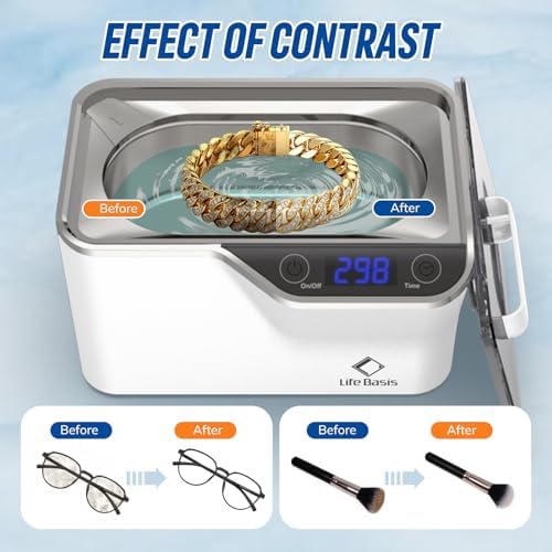 • ✨【Profesional】: Genera ondas sonoras ultrasónicas de 42,000 Hz, con transductores de 35 W para una limpieza potente pero suave que no dañará sus objetos de valor. Cable de alimentación extraíble, fácil de reemplazar el agua. La ventana de la tapa transparente le permite observar claramente el proceso de limpieza.