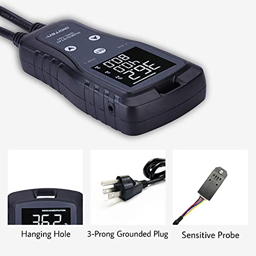 - 🍄【Convenient Design】Illuminated LED display is easy to read and program even in darkness. And you can hang the humidity controller on the wall or hooks to keep cords untangled and neat.