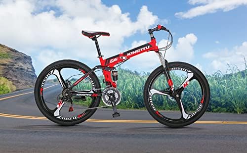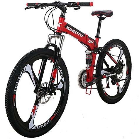 Eurobike Adult Folding Bike,26 Inch Full Suspension Mountain Bike,21 Speeds Folding Bicycle with Disc Brake and 17 inch Frame MTB Bicycle