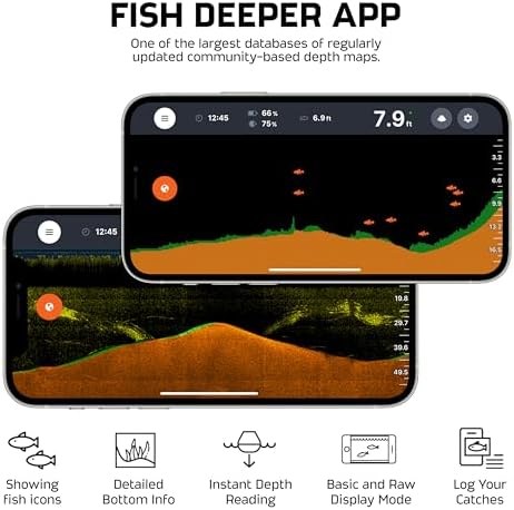 - SENCILLO Y EFICAZ - Este buscador de peces para teléfono te tiene pescando en minutos. Simplemente empareja con la aplicación Fish Deeper en tu dispositivo móvil y ve instantáneamente datos útiles como ubicación y tamaño de los peces, profundidad, contorno del fondo, vegetación y más. Descarga gratuita y compatible con dispositivos iOS y Android.