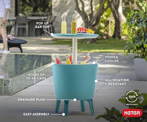 Keter Modern Cool Bar Outdoor Patio Furniture and Hot Tub Side Table with 7.5 Gallon Beer and Wine Cooler, Teal