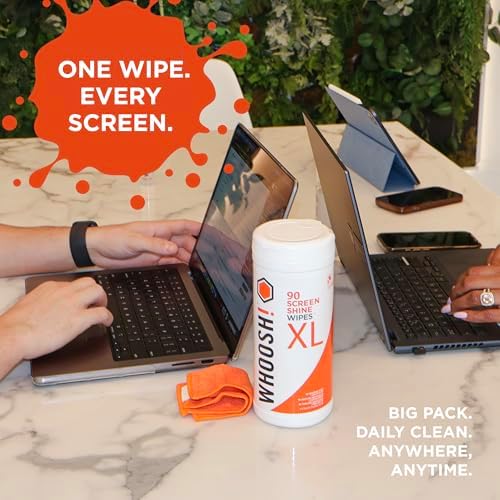 WHOOSH! Screen Shine 90 Count Touch Screen Cleaner Wipes for Car, OLED, TV, Eyeglasses, Laptop – Lint-Free, Non-Abrasive Wipes – Streak-Free Finish – Non-Toxic & Odorless – Microsuede Cloth Included