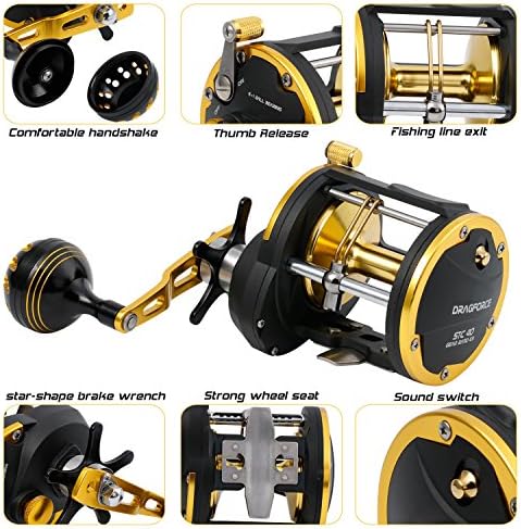 Trolling Reel Saltwater Level Wind Reels, Drag Reels Boat Fishing Ocean Fishing for Sea Bass Grouper Salmon