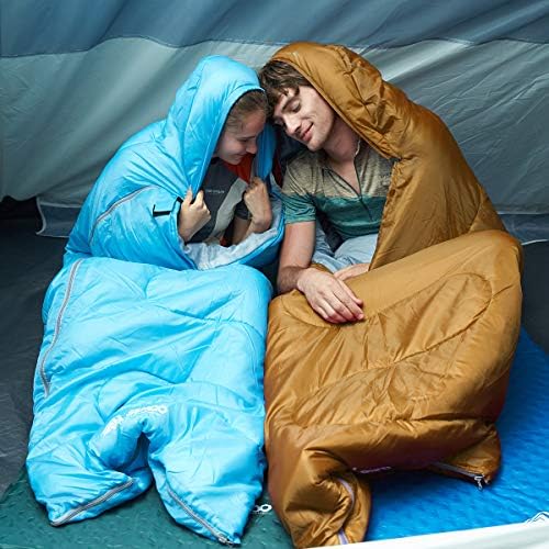 - [CAN BE USED AS A QUILT] 2-way Premium Quality Upgraded main zipper lets you fully open the bag to use it as a quilt or unzip just the bottom for ventilation. The hood design with drawstring structure makes you warmer by containing heat. Side velcro tap keeps zipper from slipping.