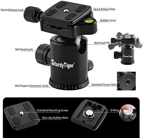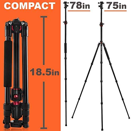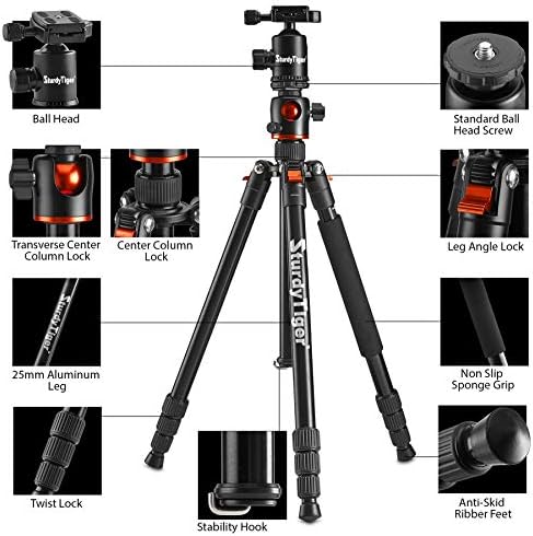 Sturdy Tiger 75” Camera Tripod & Monopod for DSLR, Professional Horizontal Arm Tripod with 360 Degree Metal Ball Head, Compact Aluminum Tripod for Travel and Work, Sturdy and Easy to Use