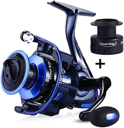 - FASHIONABLE APPEARANCE - TROUTBOY Spinning Reels Is Produced In Our Most Popular Black And Blue Color Combo. Its Bold, Brilliant Finish And High Strength T6 Double Anodized Aluminum Spool, Latest Design Unique Main Body With A Power Launch Lip For Farther Casting, And More Fashionable Than Competitor'S Spinning Reel.