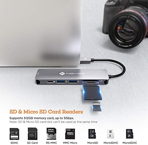 USB C Hub MacBook Pro NOVOO Type C Adapter USB C Dongle, 6 in 1 USB C to HDMI Multiport Adapter Compatible for USB C Laptops and Type C Devices (4K HDMI USB3.0 SD/TF Card Reader 100W PD)