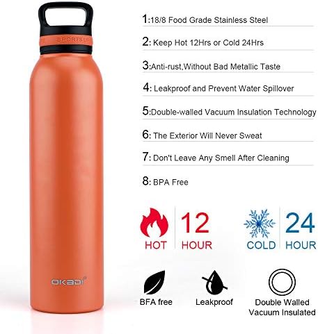 - [OKADI WATER BOTTLE] Double-wall vacuum flask keep hot for 12 hours, cold for 24