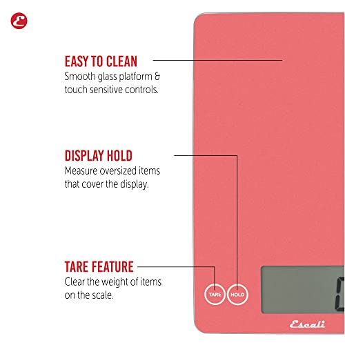 Escali Arti Glass Food Scale Digital Countertop Kitchen, Baking and Cooking Scale with Nutrition and Calorie Counter, 15-Pound Capacity, 9" x 6.5" x .75", Desert Rose