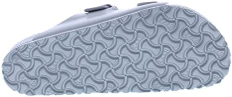 - The legendary two-strap design from BIRKENSTOCK - the Arizona. Modeled on the cork original, this sandal is made from ultra lightweight and highly flexible EVA. These sandals are shock absorbing, waterproof, and skin-friendly. Wear them at the beach, in the garden, or around the gym and after workouts. It's the perfect addition to your classic BIRKENSTOCK sandals.