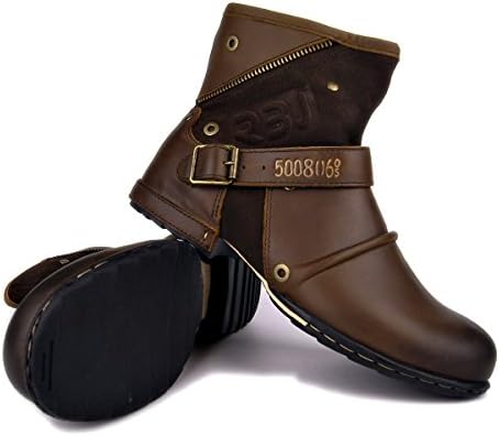 OSSTONE Moto Boots for Men Fashion Zipper-up Leather Chukka Boots with Fur Casual Shoes 5008-6-br-US8