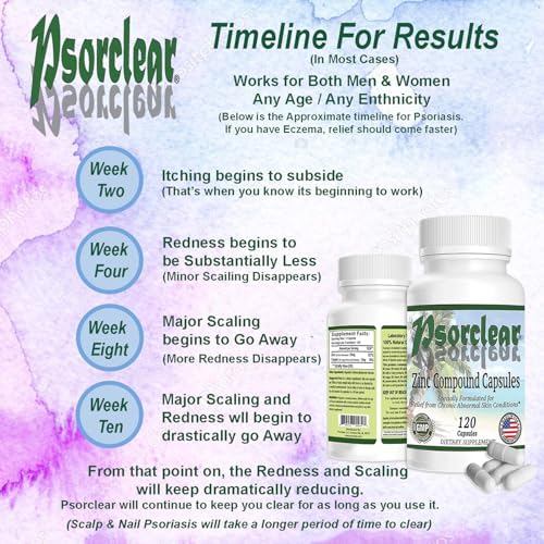 Psorclear-Psoriasis & Eczema Relief | A Proven Effective and All-Natural Product for Psoriasis Eczema & Rosacea Relief That Works - Rated One of The Best (120 Count Bottle)