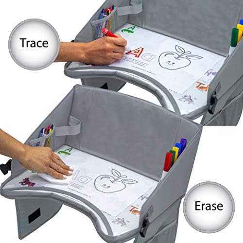 - BOARD CUM TABLE: Our carseat travel tray for toddlers is more than just a tray, it’s a full-fledge lesson tutorial with ABC written and an animal picture is drawn, so your kids can learn while traveling as well. Not only that, car seat desk tray for kids can also be used as a surface for eating, coloring on your coloring books, drawing something, or playing games