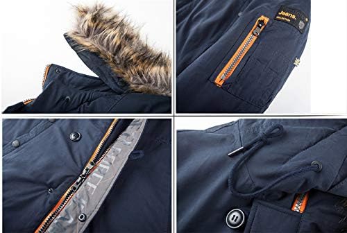 - CARCASA Y RELLENO GRUESOS E IMPERMEABLES: 100% poliéster, el tejido de poliéster de alta tecnología mantiene el cuerpo seco y cálido en cualquier condición. Acolchado de plumón de algodón (100% poliéster). La parka de invierno con capucha de piel sintética para hombre está cosida con pequeños puntos. El forro de algodón 100% poliéster proporciona una calidez y comodidad perfectas en el frío invierno. Todos los bolsillos tienen un forro suave para mantener los dedos calientes. La mejor opción para regalos de Año Nuevo para el hijo, el padre, el esposo, los amigos o el profesor.