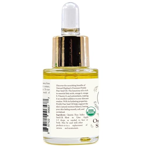 Natural Elephant USDA Certified Organic Prickly Pear Seed Oil, Cold-Pressed, 0.5 fl oz (15g) - Rich in Antioxidants & Essential Fatty Acids