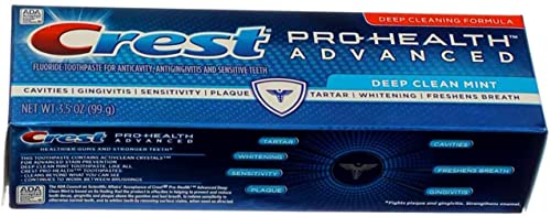 Protect your teeth from the acids in every day food and drinks with Crest Pro-Health Advanced Deep Clean Mint. Now the only toothpaste with the ADA seal of acceptance for protection against acid erosion. Crest Pro-Health Advanced Deep Clean Mint Toothpaste includes 8 advanced benefits that help protect areas dentist check most:-Whitening-Freshens Breath-Acid Erosion