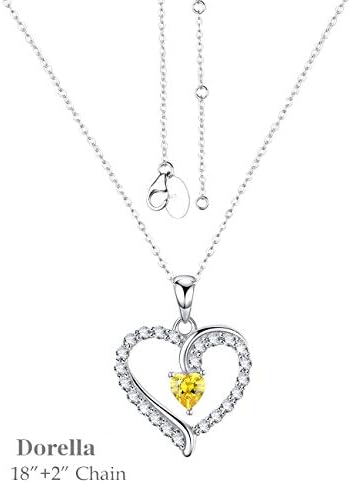 Dorella November Birthstone Jewelry Wife Mom Christmas Birthday Gifts Citrine Necklace Women Love Hearts Pendant Jewelry Her Sterling Silver
