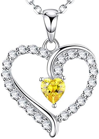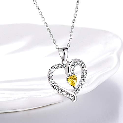 November Birthstone Jewelry Wife Mom Birthday Gifts Citrine Necklace Women Love Hearts Pendant Jewelry Her Sterling Silver