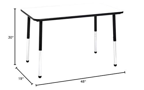 Amazon Basics Dry-Erase 30 x 48 Inch Rectangular School Activity Kids Table, Ball Glide Legs, Adjustable Height 19-30 Inch, Black