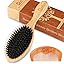 - 【Top-Quality Beech Wood】The hair brush boar bristles is taken from the finest beech wood. It is characterized by its softness and elasticity to the touch, its long service life and its visual aesthetics. The ergonomic cut of the handle makes it easier and more comfortable to use. The beech wood is of higher quality and more popular than other wooden hairbrushes.