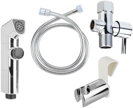 The Brondell EasySpa hand-held bidet (diaper sprayer/shattaf) is a simple and inexpensive way to convert your existing toilet into a hygienic bidet. Ergonomic chrome-colored hand sprayerDual spray adjustability: wide spray or streamMetal T-valve with water pressure control for spray pressure adjustabilityElegant metal spiral hose with patented inner woven core (47in long)Sprayer holster suitable for wall mount or toilet mount