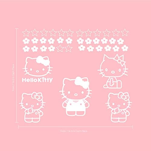 - ✓ Our high-quality vinyl adhesive decal "Hello Kitty" comes in 7 inches by 9 inches. The pictures are for display and inspiration only. All of our vinyl wall decals are manufactured with premium industrial grade Lutema self-adhesive vinyl.