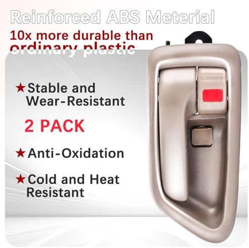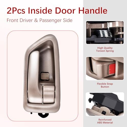 - 🚗【DIRECT FIT & EASY INSTALLATION】 This pair front or rear left driver & right passenger side beige/tan door handles for Toyota are exactly in OEM finish. OE-Like design ensures structural integrity and perfect drop-in fit.【NOTE】Please check the description or use the year/make/model drop down bar and interchangeable part numbers to confirm the compatibility before purchase our this Interior Door Handle.2000 camry interior door handle 2001 camry inside door handle 1997 camry door handle 98 camry door handle interior 99 toyota camry driver door inside handle 2001 toyota camry indoor handle