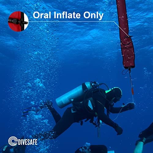 Boya de Marcador de Superficie Diferida DiveSafe – Fondo Cerrado de 7 pies con Banda Reflectante de Alta Visibilidad, Luz Estroboscópica y Soporte para Linterna, Carrete de ABS de 100 pies y Silbador