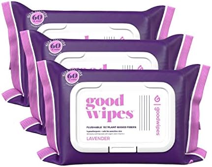 goodwipes Flushable Butt Wipes Made with Vitamin E & Aloe – Soft & Gentle Wet Wipe Dispenser for Home Use, Septic & Sewer Safe – Largest Adult Toilet Wipes – Lavender, 180 count (3 packs)