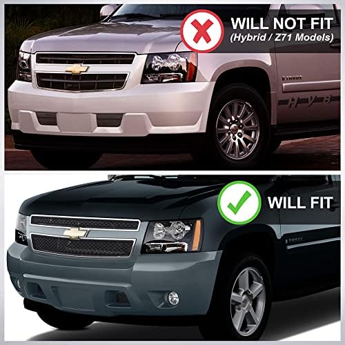 Glossy Front Grille Guard Cover Compatible with 2007-2014 Chevy Tahoe/Suburban/Avalanche All Models, JDM Sport Mesh Style, Durable ABS Replacement Bumper Grill Cover